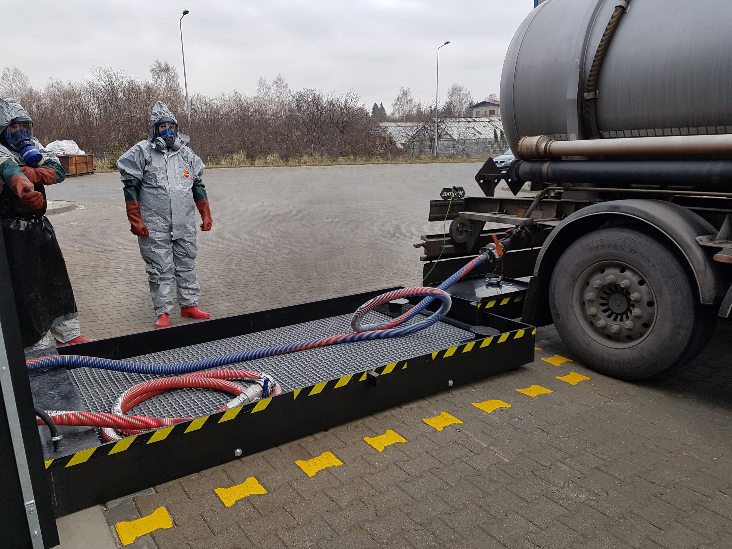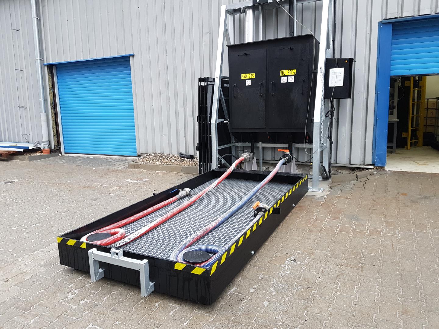 Die Befüllung von Behälterwagen ist mit der Gefahr des Auslaufens und des Eindringens von Schadstoffen in den Boden verbunden. Wir bieten die Möglichkeit des Schutzes vor den