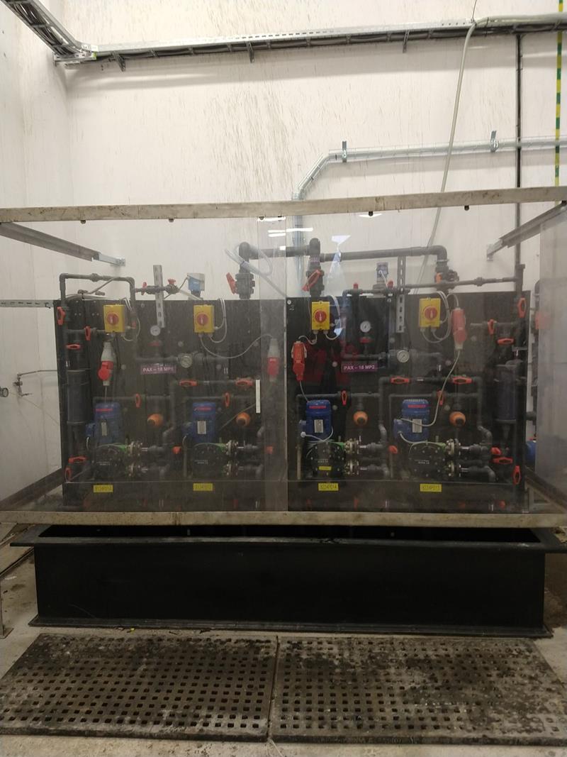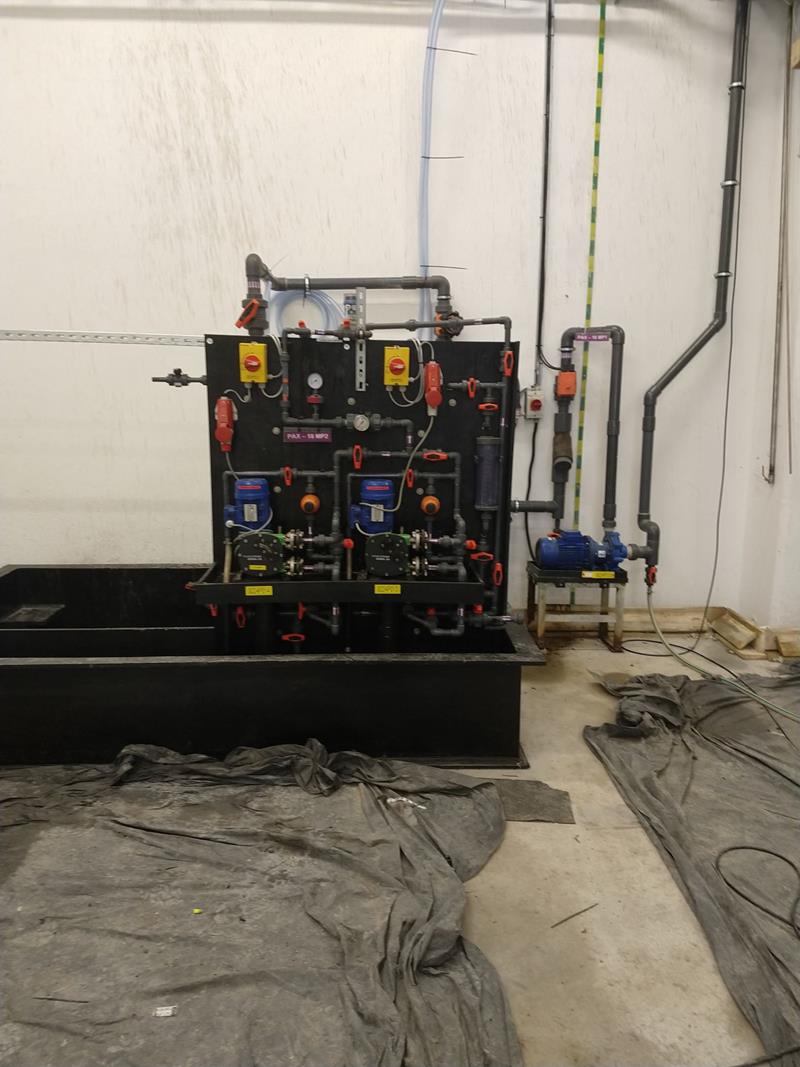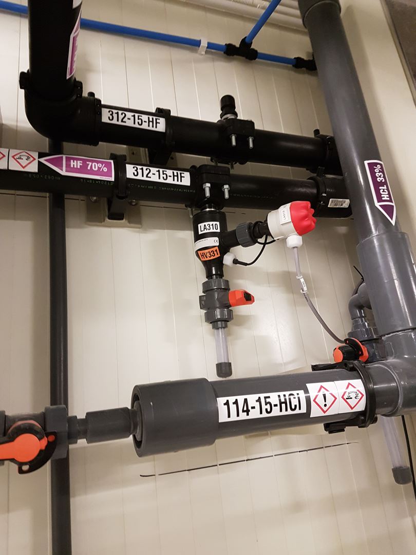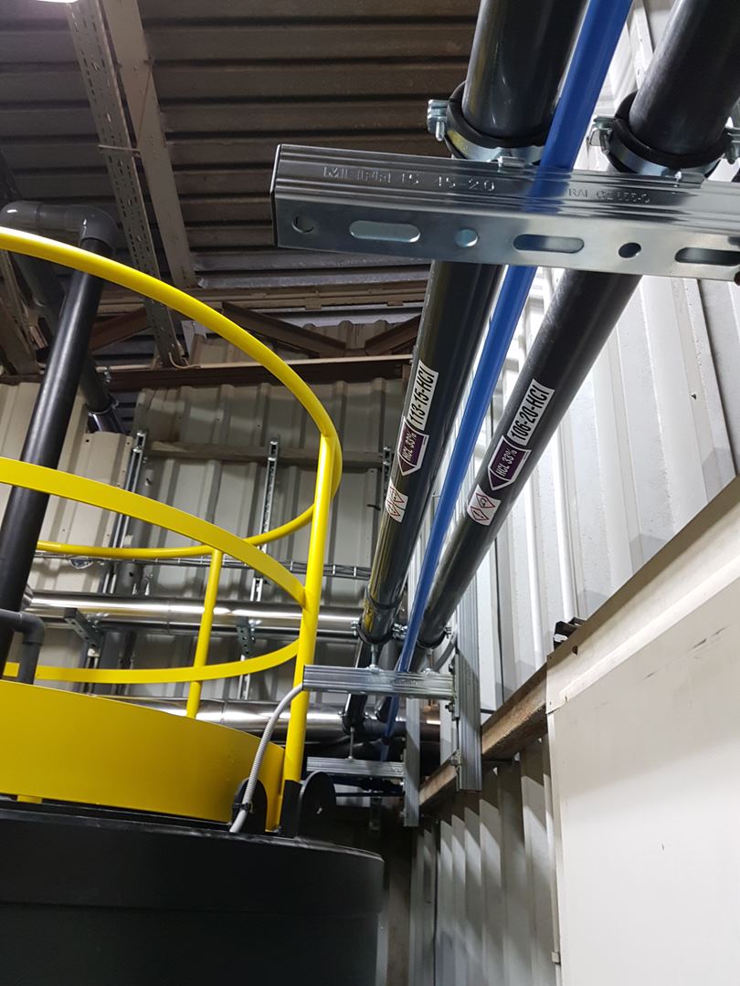 Nachfolgend präsentieren wir die Fotos von unserem Projekt die Anlage zum Dosieren und Lagern von chemischen Medien: HCl und NaOH. Die Anlage enthaltet sowohl ein- als auch doppelwandige Rohrleitungen sowie isolierte Rohrleitungen, die zusätzlich mit elektrischen Heizstrecken ausgestattet ist.