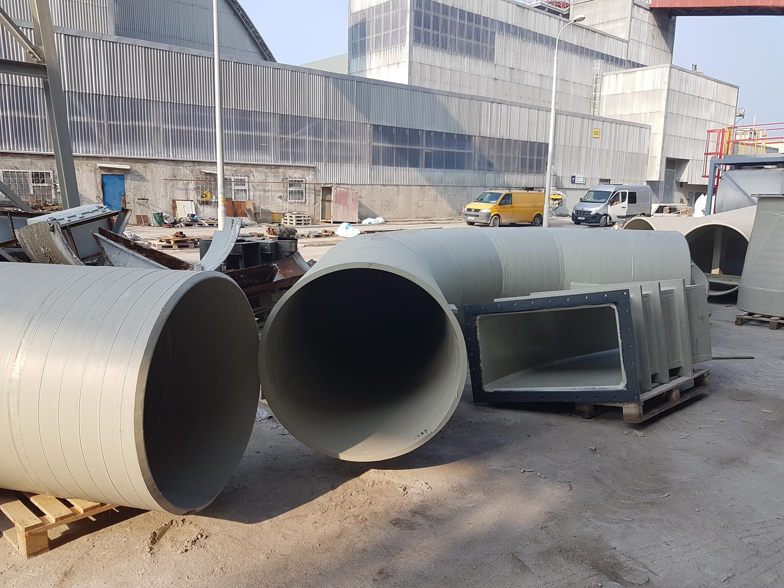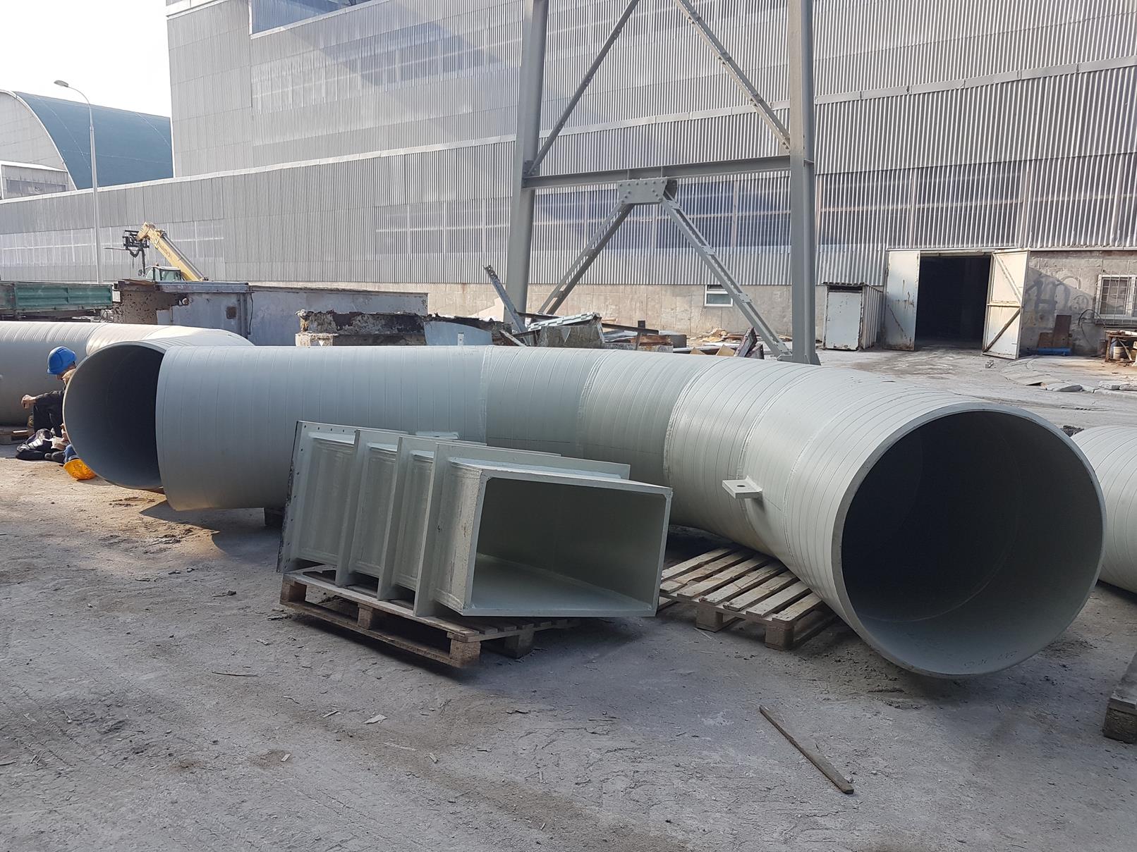 Nachfolgend finden Sie Fotos von Elementen einer unserer Implementierungen von Lüftungskanälen aus PP-Material.