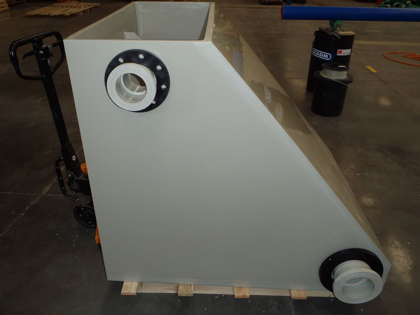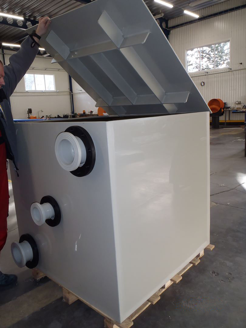 Behälters sind ein unverzichtbares Element in Unternahmen mit unterschiedlichen Arbeitsmerkmalen. Sie werden in jeder Industriebranche eingesetzt. Das Konstruktionsmaterial und das Herstellungsverfahren des Behälters werden in Abhängigkeit von der beabsichtigten Verwendung und den Betriebsbedingungen der Geräts ausgewählt. Wir können sowohl zylindrische als auch rechteckige Behälters herstellen. Wir verfügen über das Wissen und die Erfahrung, die es uns ermöglichen, die geeigneten technischen Parameter der Geräte auszuwählen. Unsere Projekte wurden in der Chemie-, Lebensmittel- und Papierindustrie, in Kläranlagen und Wasseraufbereitungsanlagen eingesetzt. Gemeinsam mit dem Kunden erwägen wir eine Lösung, die einen Kompromiss zwischen der Erfüllung seiner Bedürfnisse und dem Preis des Geräts darstellt. Nachfolgend präsentieren wir ein Beispiel für PE- Behälters, die in einer Anlage der Lebensmittelindustrie verwendet werden.